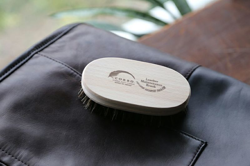 オイルを塗ったあとの余分なオイルを馴染ませたり、 程良い硬さの馬毛ブラシでのブラッシングは、何も塗らなくても、皮革の肌理を整えるのにオススメです。